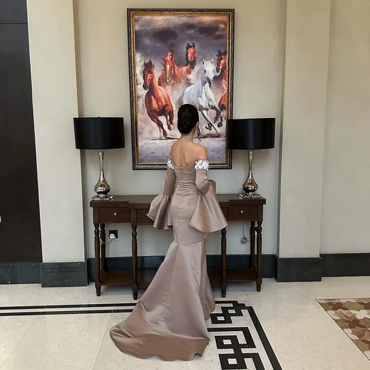 Mermaid Prom Dresses Long Sleeve Formal Evening Gowns Lace Satin Party Gown