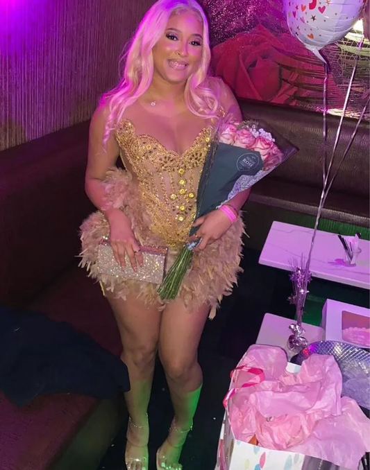 Gold Sparkly Short Prom Homecoming Dresses for Black Girl Luxury Crystal Beaded Feather Birthday Party Gown