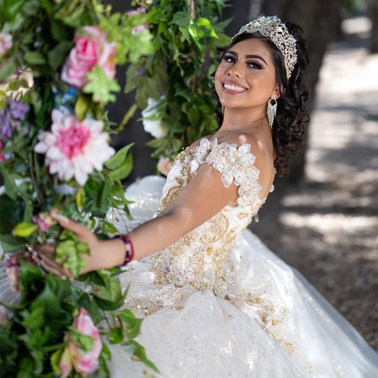 White Quinceanera Dresses Ball Gowns Appliques Lace Beading Crystal Birthday Princess Vestidos 15 Para XV Años