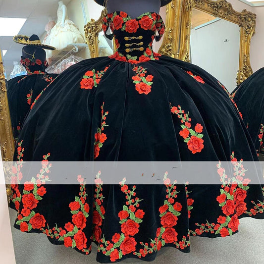 Charro Embroidery Quinceanera Dresses Off Shoulder Mexican Vestidos De 15 Años Backless Sweet 16 Pageant Dress
