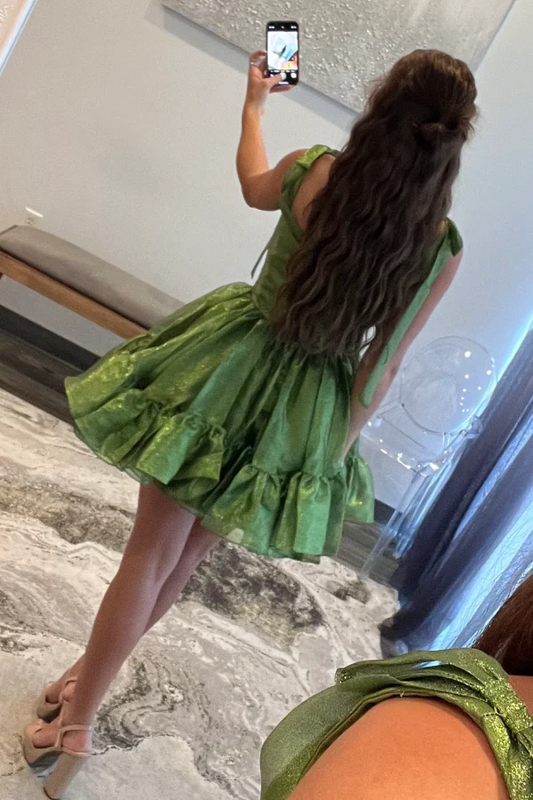 A-Line Sweetheart Neck Straps Ruffles Homecoming Dress