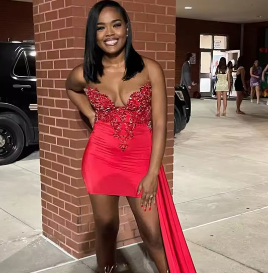 Pretty Red Short Party Dresses Body Corset Beaded Evening Dressing Gowns Rhinestone Cocktail Dress Women Birthday Party Dress