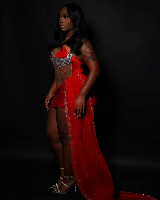 Red Crystal Short Prom Dress For Black Girl Sparkly Crystals Senior Cocktail Dress Birthday Gown Customized