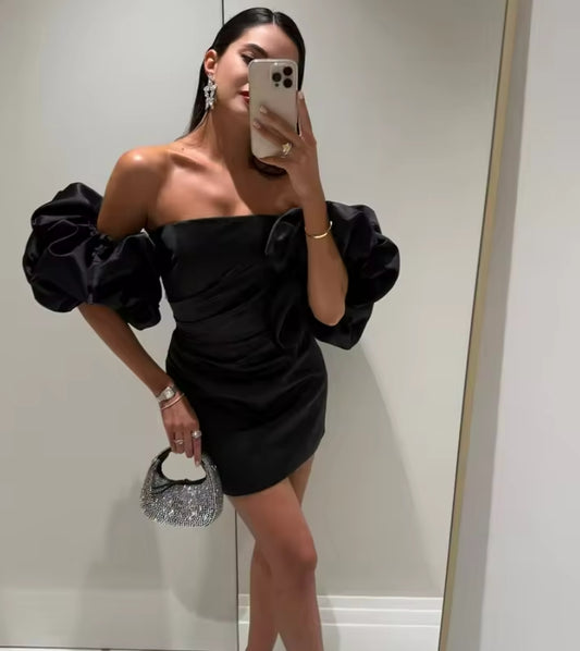 Black Mini Prom Dresses Sweetheart Puffy Cocktail Dress Stain Lace Sexy A-Line Speical Occasion Gowns Club Wear Customized