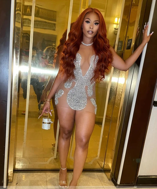Luxury Silver Crystals Spaghetti Short Prom Dress African Glitter Sequin Mermaid Mini Cocktail Party Gown See Thru robe de balRegular price $195.75 USDRegular priceUnit price / per$0.00 USDSale price $195.75 USD