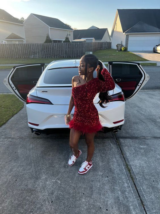 Burgundy Sequin Short Party Dress,Fashion Homecoming Dress