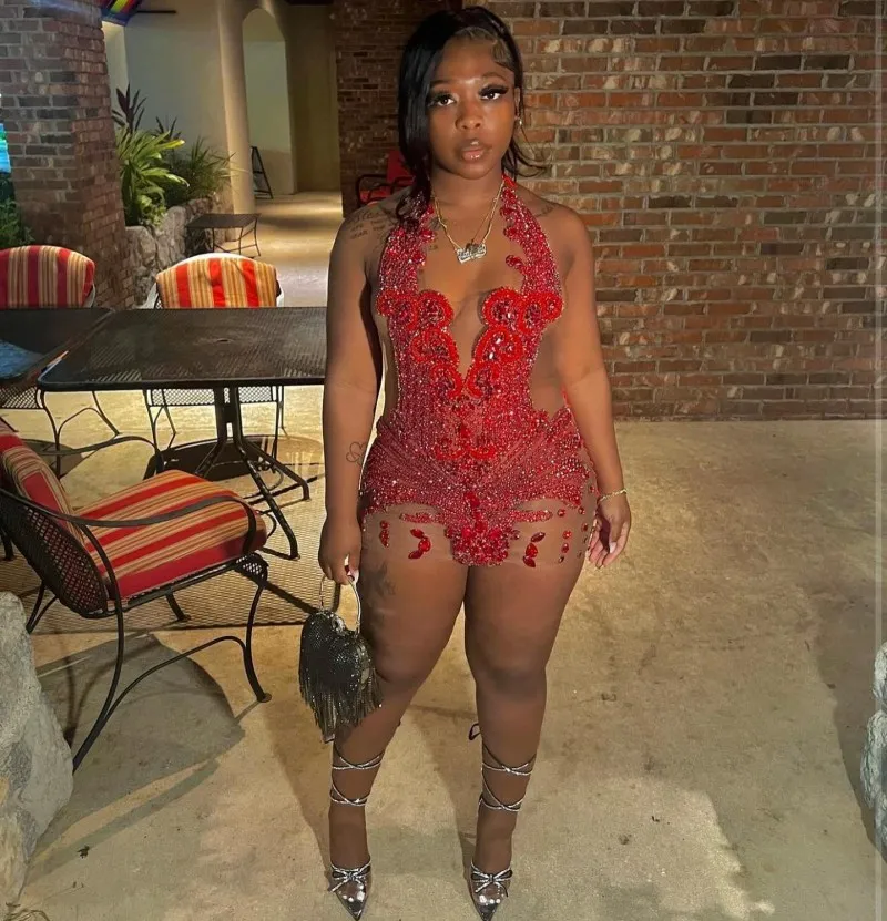 Black Girls Crystal Birthday Dresses Halter Beading Prom Dress Beading Vestidos De Graduación Cocktail Party Dress