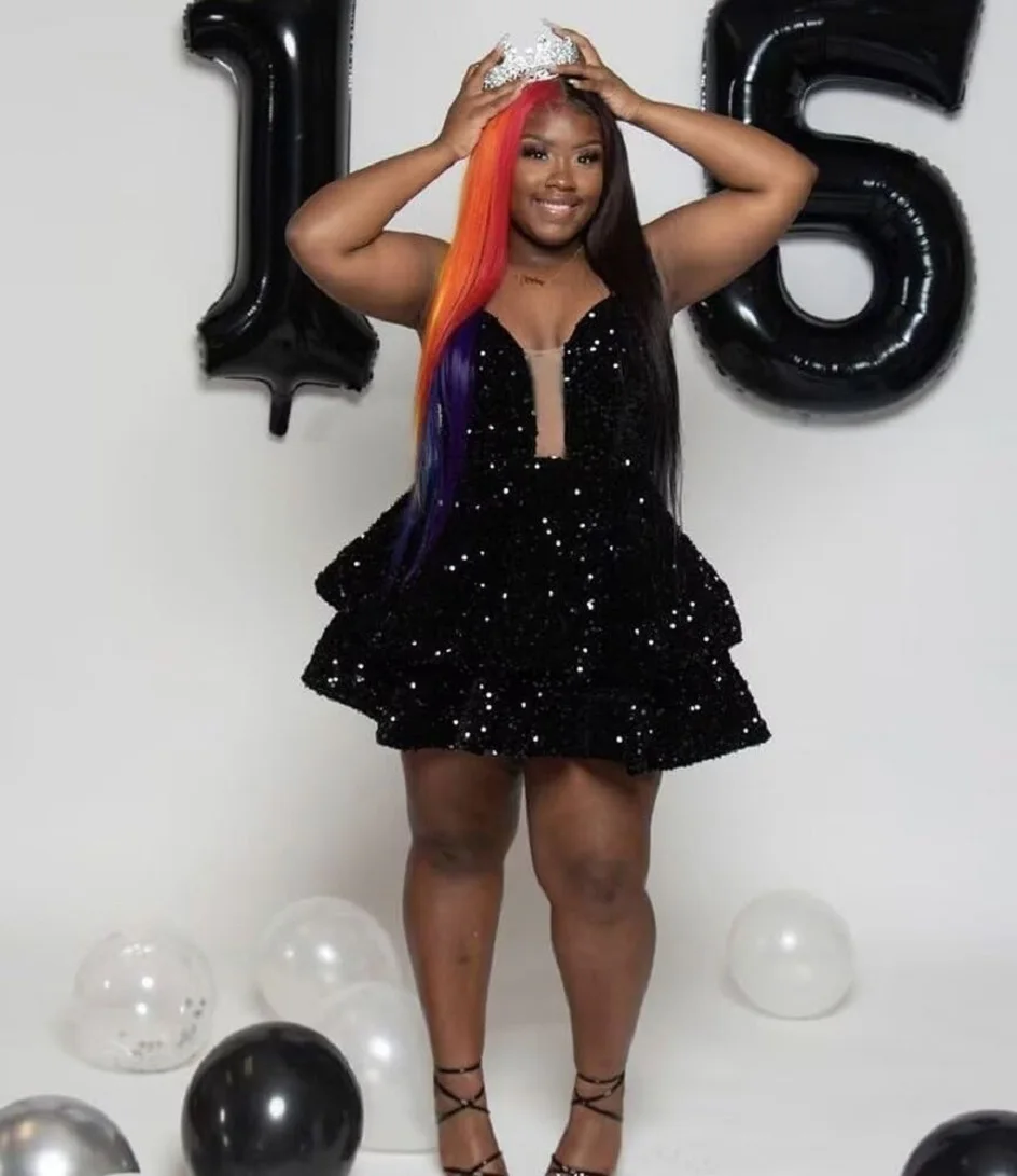 Sparkly Velvet Sequin Prom Dresses for Teens Sweet 16 Dress Cocktail Party Dresses with Ruffle Skirt Glitter Short Homecoming