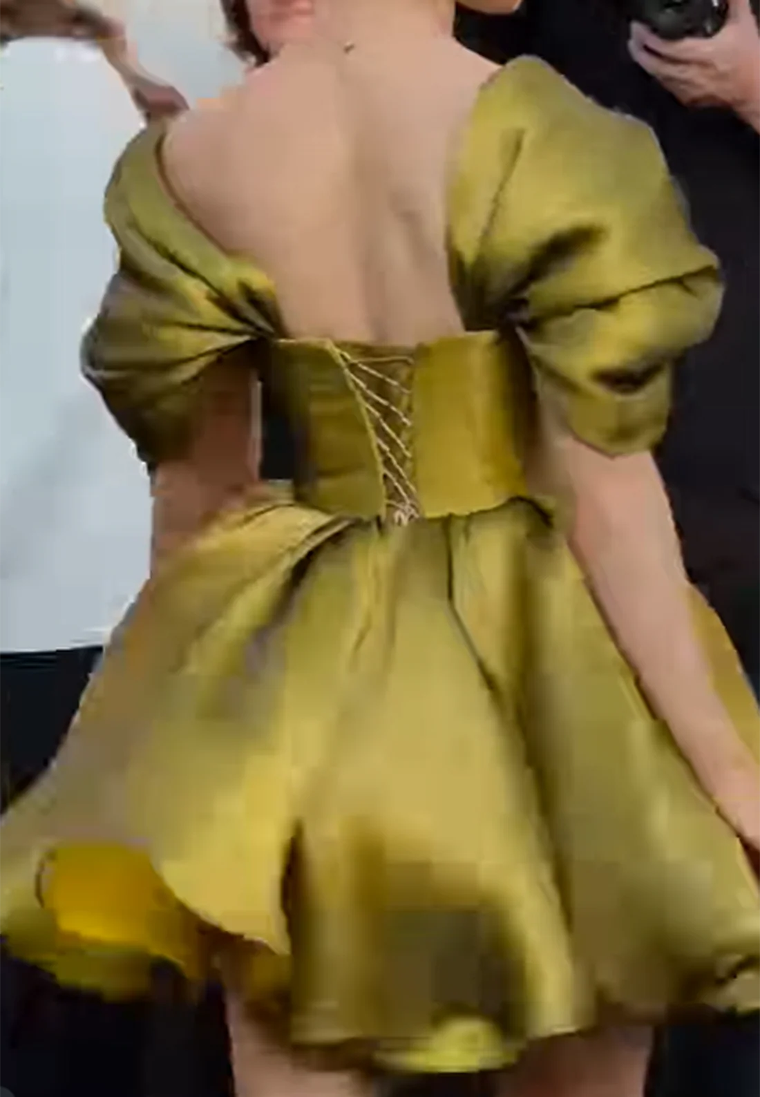 Square Cap Sleeves Sleek Pleated A-Line Party Homecoming Dress