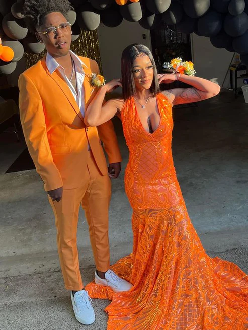 Sexy Orange Sequins Long Prom Dress For Black Girls,New Arrival Prom Dress