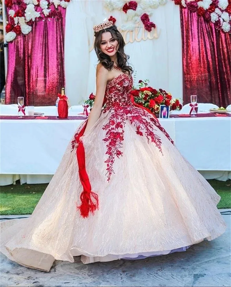 Red Princess Ball Gown Quinceanera Dress Sweetheart Sleeveless Sweet 16 Party Dresses Vestidos De 15 Anos