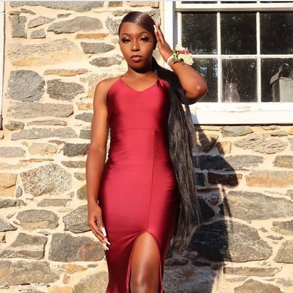 Elegant Mermaid Long Prom Dresses for Graduation Party V Neck Backless High Slit Women Formal Evening Gowns Custom Made