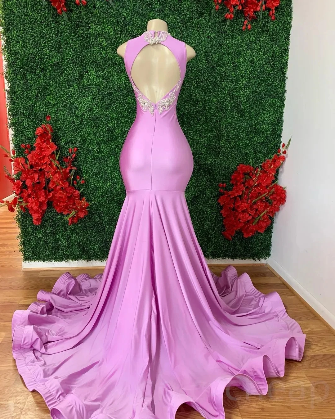 Lavender African American Prom Dresses Mermaid Sheer Beaded Backless Black Girls Nigeria Saudi Arabia Evening Dresses Gown