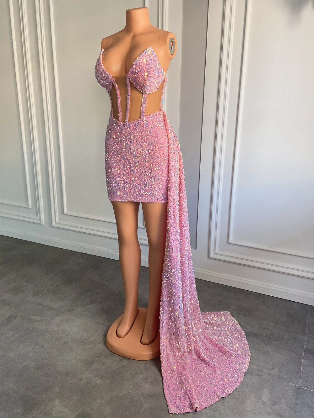 New Arrival Sweetheart Sheer Mesh Sparkly Pink Sequined African Black Girls Prom Dresses For Birthday Party