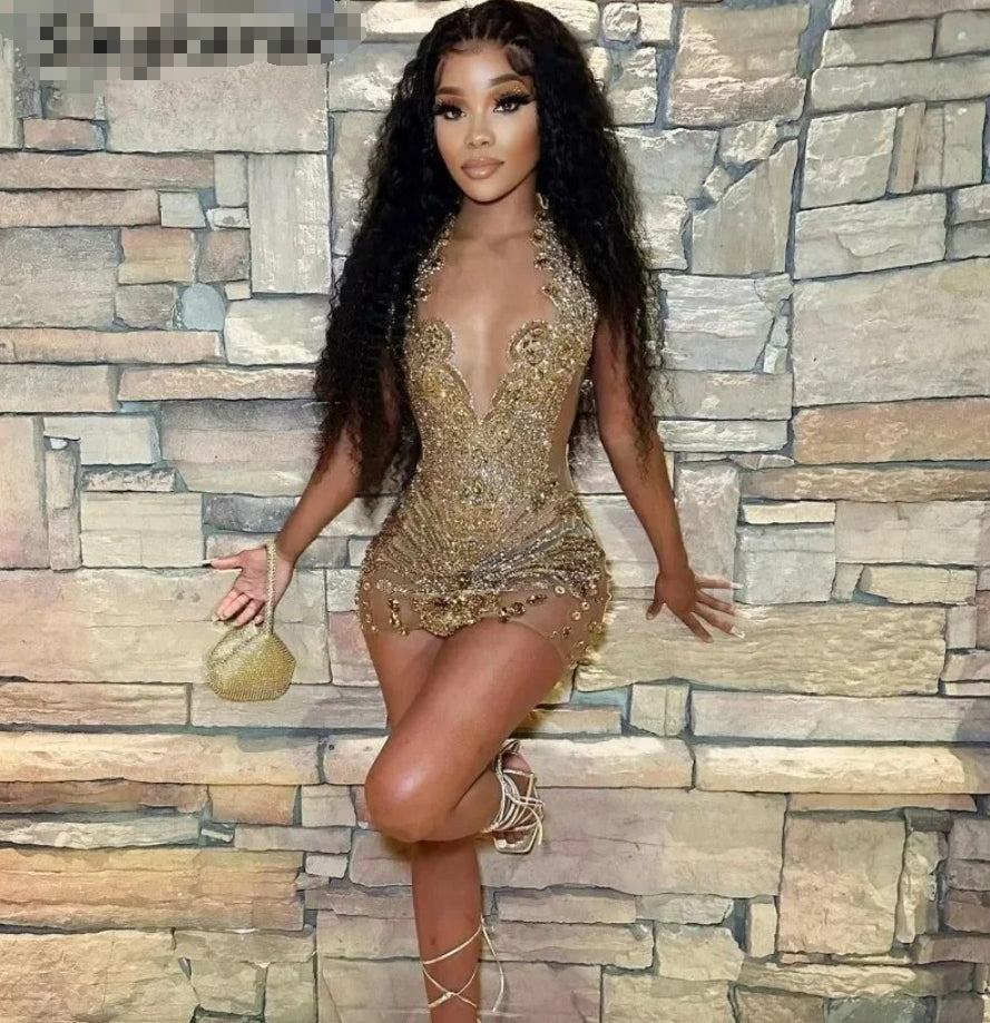 Sexy Diamonds Short Pink Prom Dresses Luxury Sparkly Beads Rhinestone Crystal Birthday Cocktail Party Gowns Robe De Bal