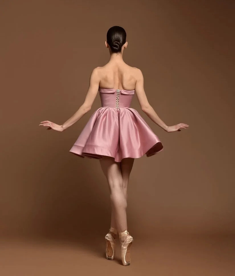 Sweet Pink Prom Dress Above Knee Length Short Party Gowns Sexy Satin Off Shoulder Princess Prom Dresses Custom Made
