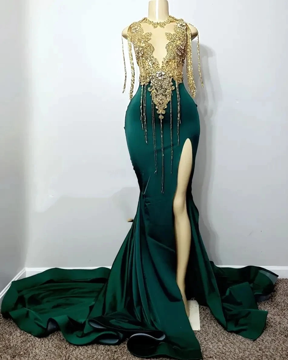 Teal Aso Ebi African Evening Dresses Mermaid Deep V-neck Appliques Slit Long Dubai Saudi Arabic Black Girls Evening Gown Prom