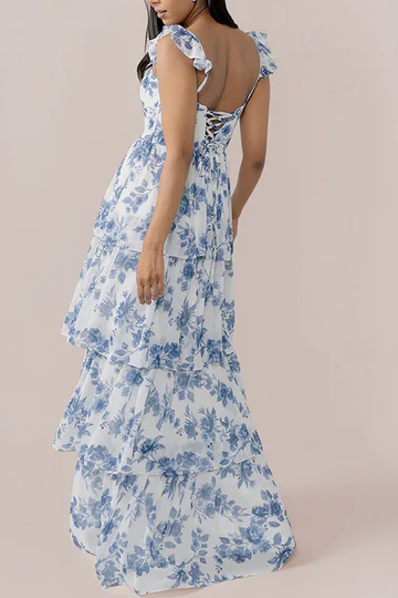 A-Line Straps Sweetheart Printing Ruffles Sleeveless Prom Party Dress