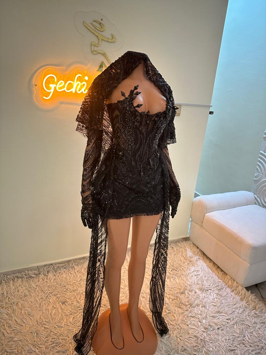 Black Cocktail Dress with Gloves Crystal Sweetheart Mini Cocktail Gowns for Women Sheath/Column Backless Sexy Party Dresses