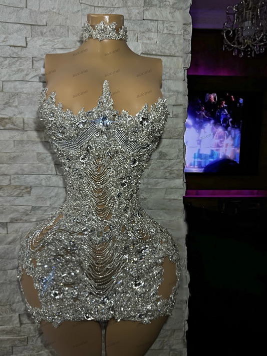 Silver Short Prom Dresses For Black Girls Crystals African American Birthday Party Women Homecoming Cocktail Dresses Customized