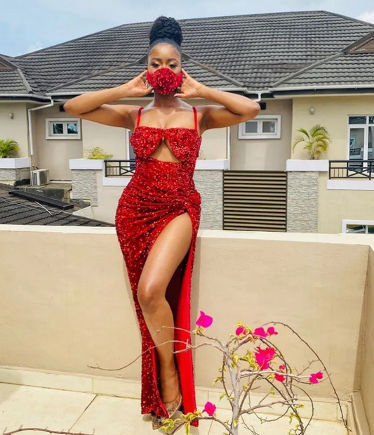 Luxury Red Prom Dresses For Black Girls Rhinestone Mermaid Party Gowns Halter Sequin CrystalRegular price $245.75 USDRegular priceUnit price / per$0.00 USDSale price $245.75 USD