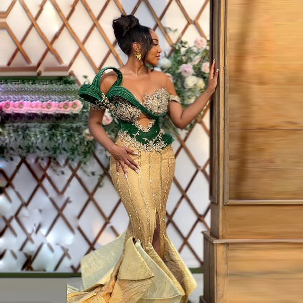 Aso Ebi Mermaid Prom Dresses Illusion Short Sleeves Arabic Black Girls Birthday Party Dress Beads Sexy Formal Evening Gowns