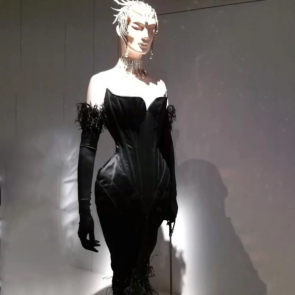 Black Tassel Feathers Evening Dresses Classic Strapless Sweetheart Sequined Mermaid Gowns Fashion Elegant Party Prom Dresses