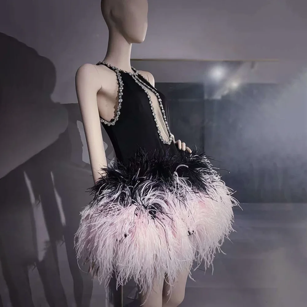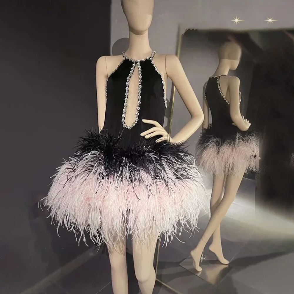 Luxury Crystal Tassel Mini Prom Dresses Fashion Halter Sleeveless Birthday Party Gowns Elegant Homecoming Cocktail Evening Dress