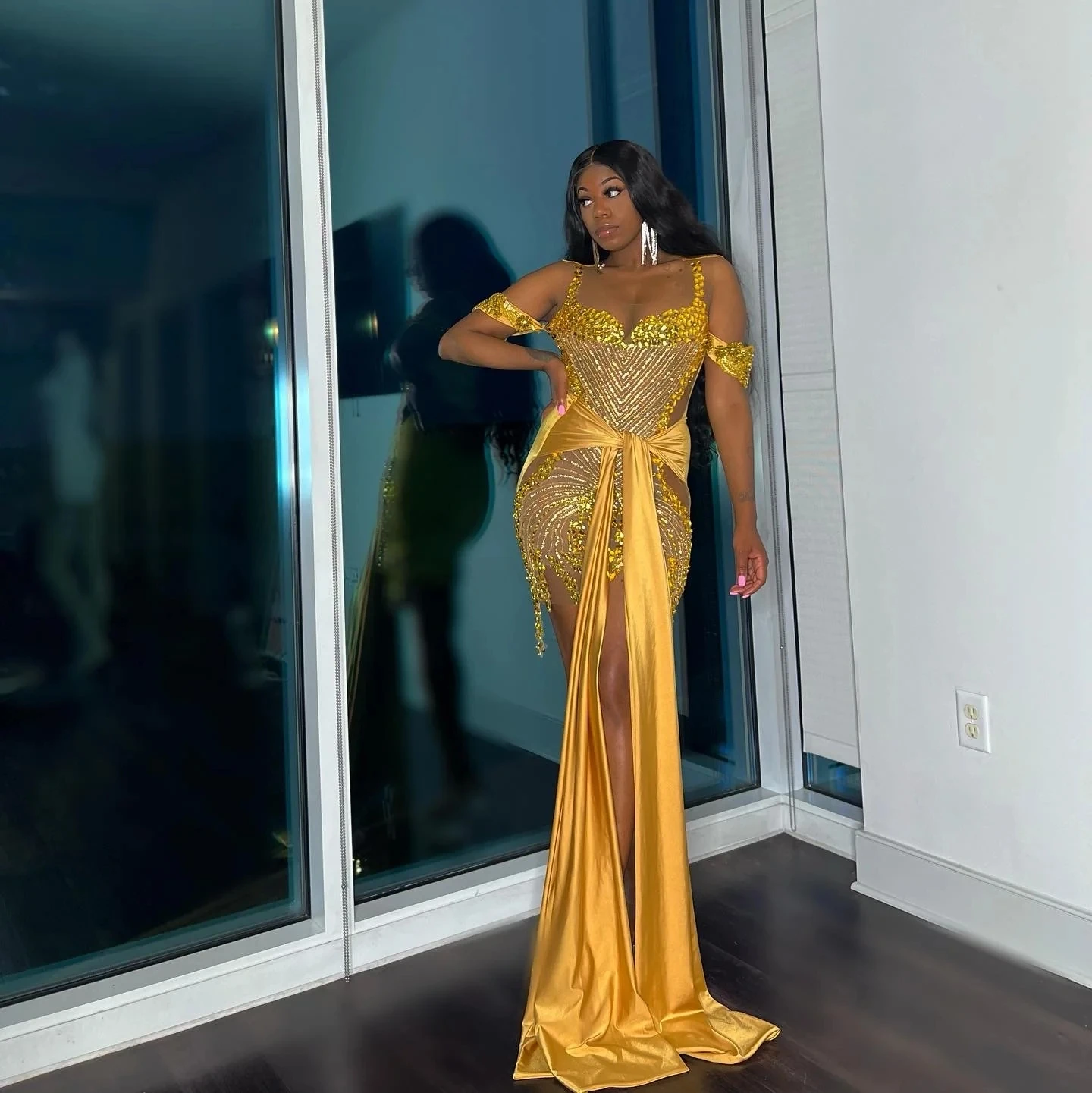 Sexy Sheer See Through Short Black Girl Prom Dress Gold Beaded African Cocktail Dresses Women Party Gowns Birthday Homecoming