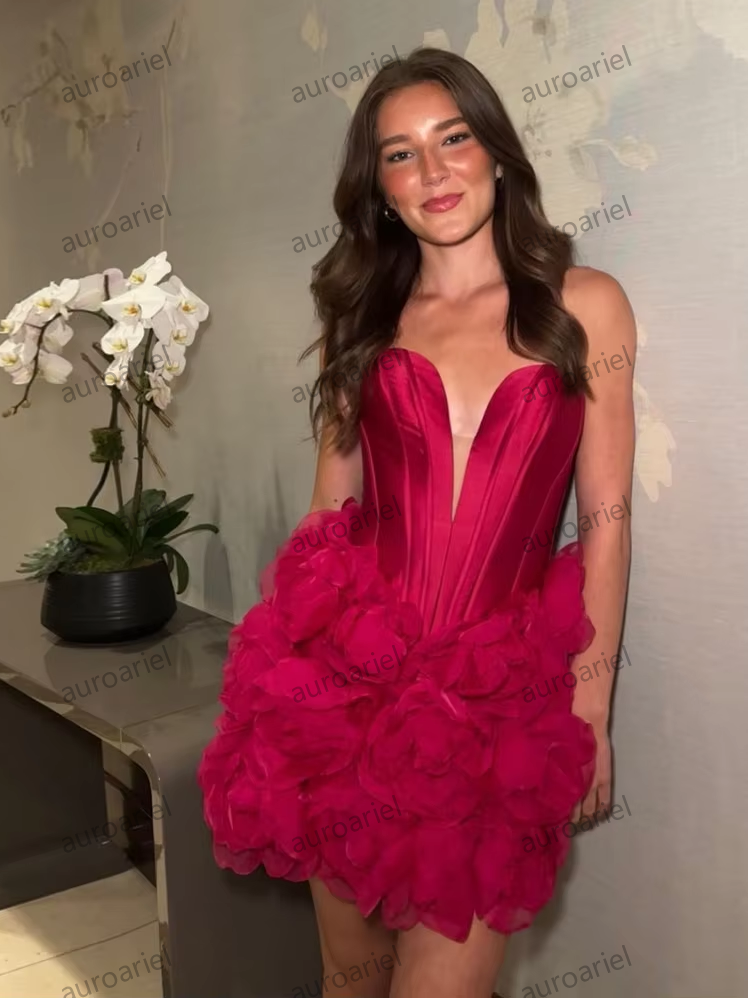 Sweetheart Hot Pink Mini Length Party Dress Ruffled Layered Floral Women Clothing Pretty Plus Size Gown