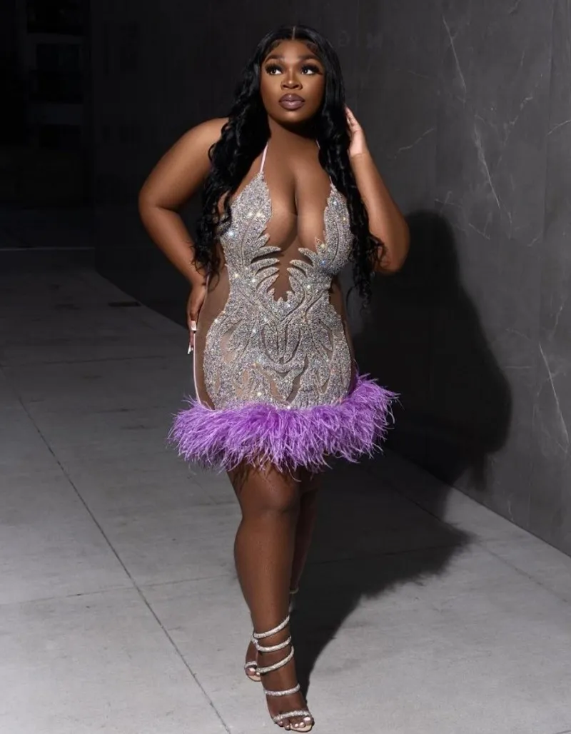 Vestidos De Graduación Cocktail Dresses For Special Occasions Sequin Feathers Short Prom Dress Halter African Women Party Gowns