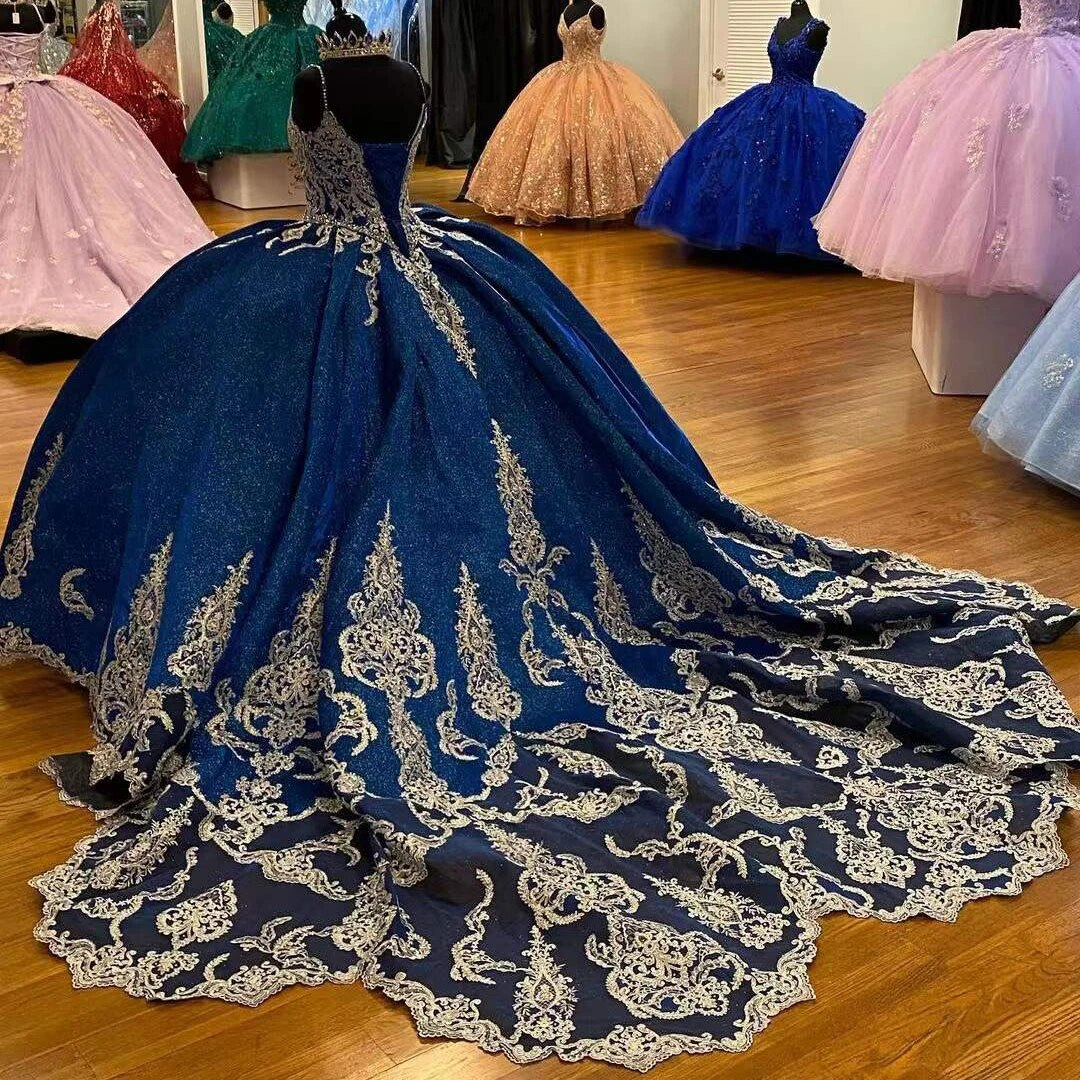 Blue Quinceanera Dresses Ball Gown For S16 weet Girl Sequined Beading Appliques Sweep Train Princess Dress Vestidos De 15 Años