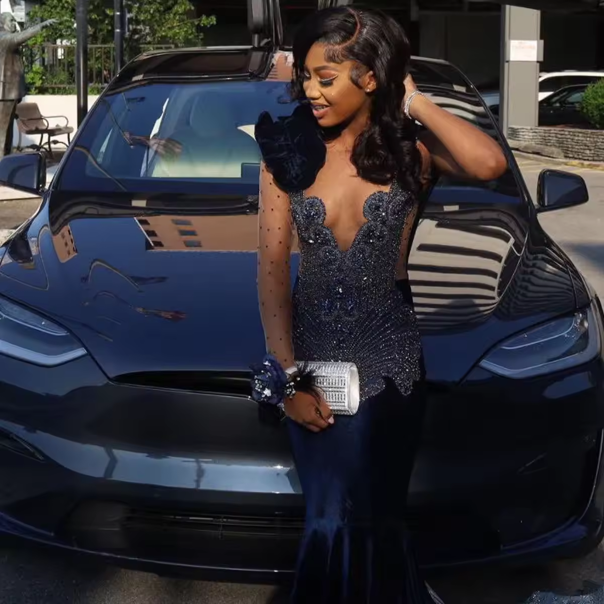 Customized Mermaid Bride Dresses V-Neck Applique Draped Pleat Lace Crystal Sleeveless Open Back Prom Dress Robe de soirée