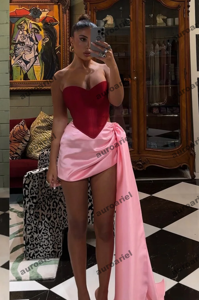 Customized Satin Draped Pleat Engagement A-line Strapless Bespoke Occasion Gown Short Dresses Evening Casual