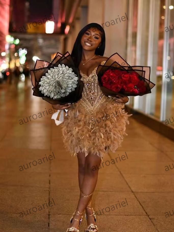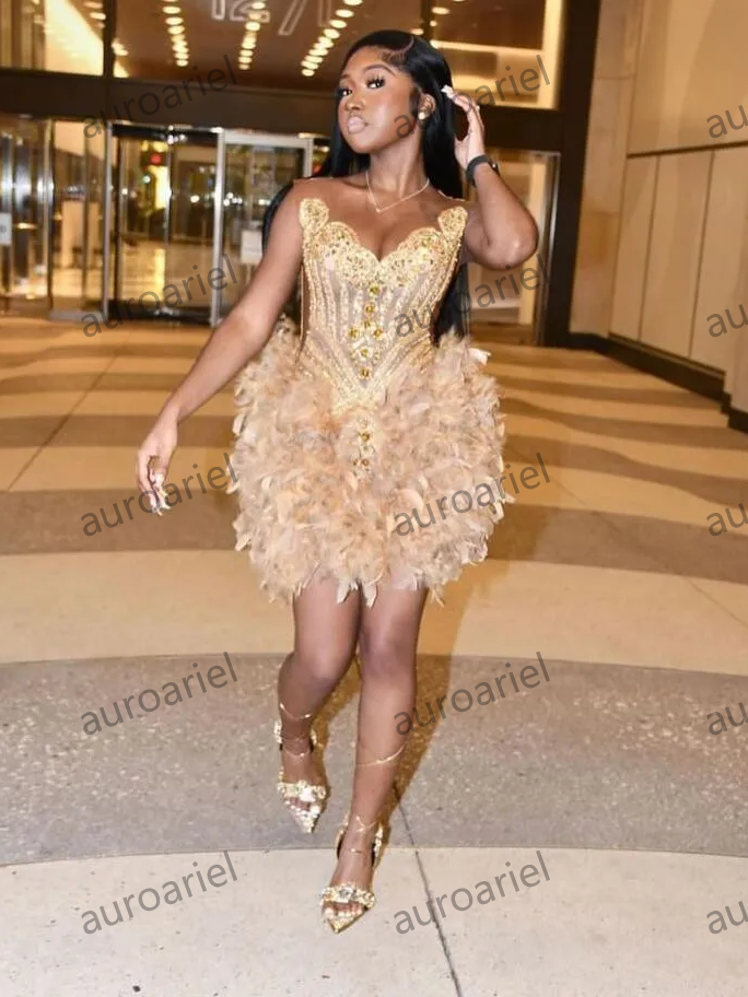 Gold Luxury Short Prom Homecoming Dresses for Black Girl