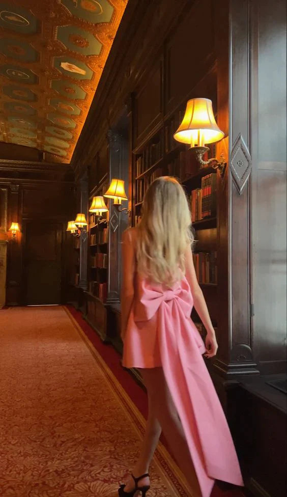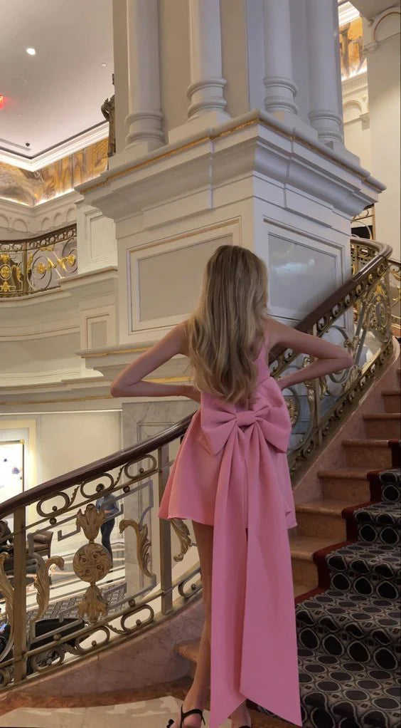 Pink Homecoming Dresses Short Cocktail Dress Party Gowns Short Prom Dress With Bowknot