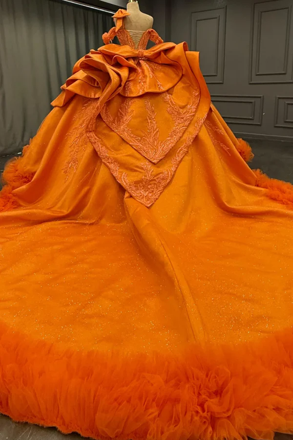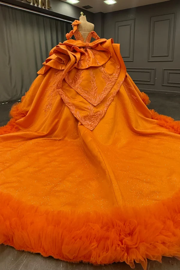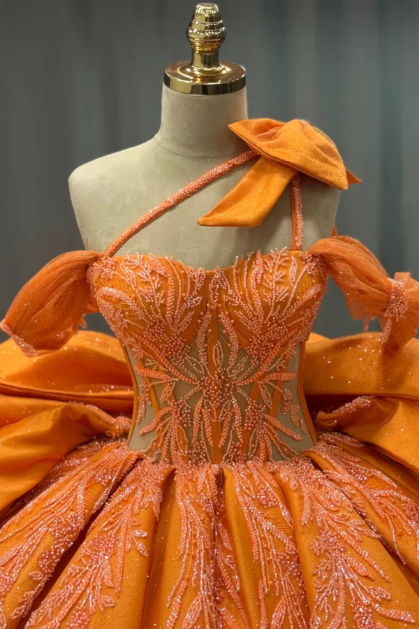 This one-shoulder, sleeveless quinceañera dress features exquisite beaded appliques that add refined texture and shimmer. The tiered skirt creates a dynamic silhouette with graceful movement, while the bow knot detail enhances its elegant and youthful appeal. Perfectly crafted for a Sweet 15 celebration, this dress balances sophisticated design with a modern, stylish edge.