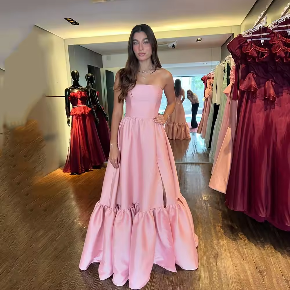 Pink Evening Dress Strapless Ruched Teens Homecoming Dress Wedding Guest Gowns Long Formal Occasion Dress Customized