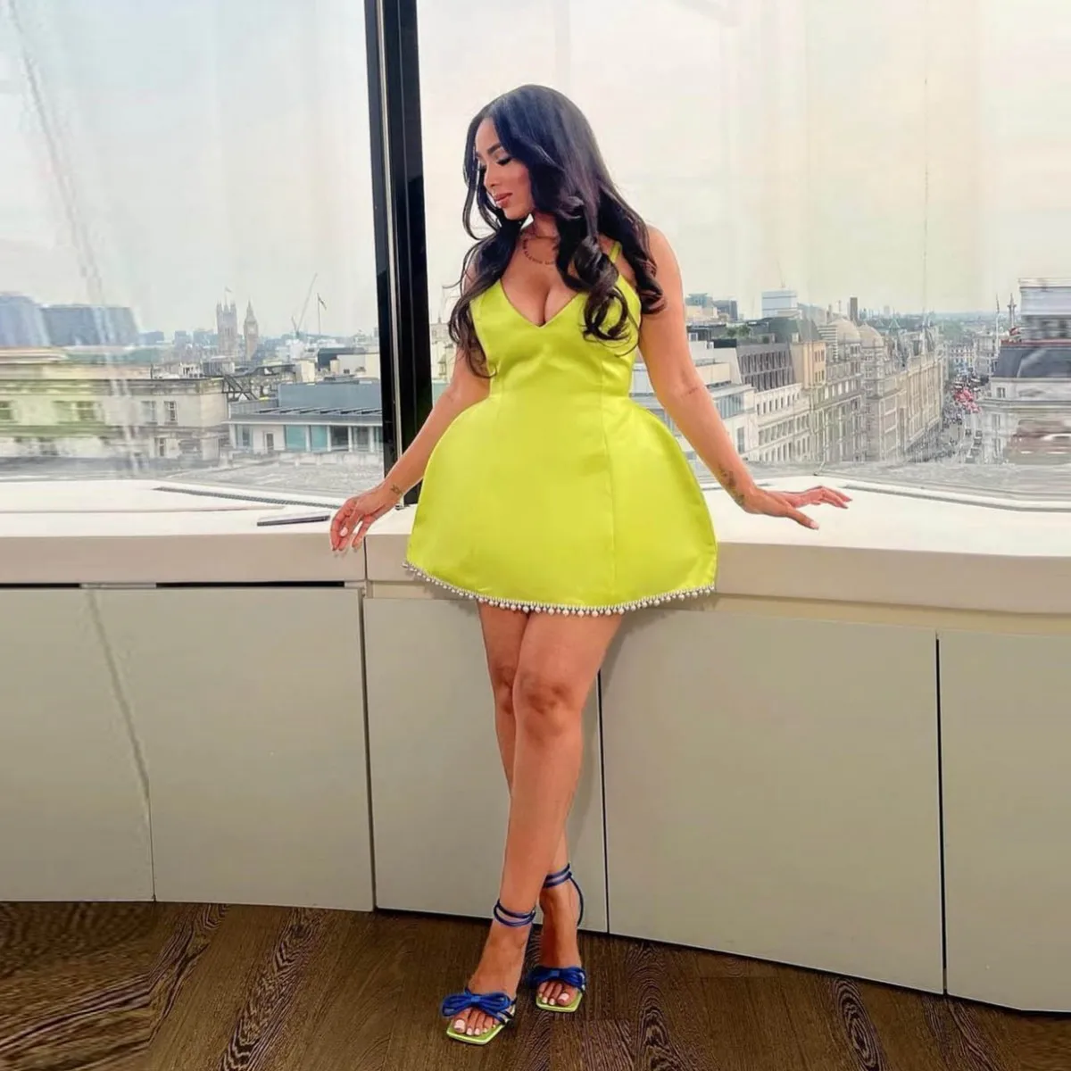 Princess Green Women Cocktail Dresses With Spaghetti Straps Beads Pearls Yong Girls Christmas Prom Party Dress