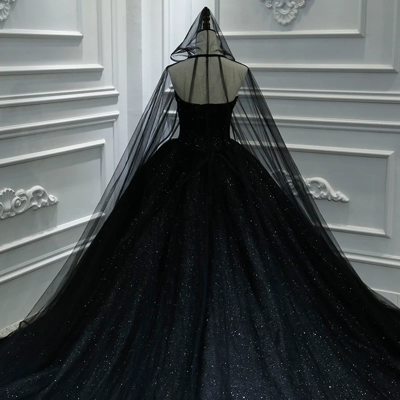 Sequin Shiny Strapless Black Ball Gown Princess Prom Dress