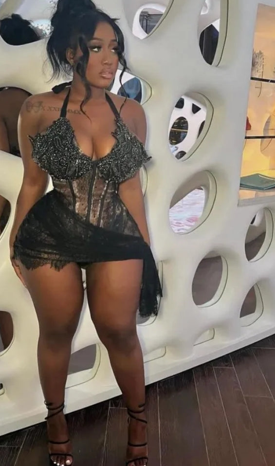 Sexy Lace Mini Prom Dresses For Women Halter Sleeveless Rhinestone Black Girls Short Birthday Dress Party Gowns