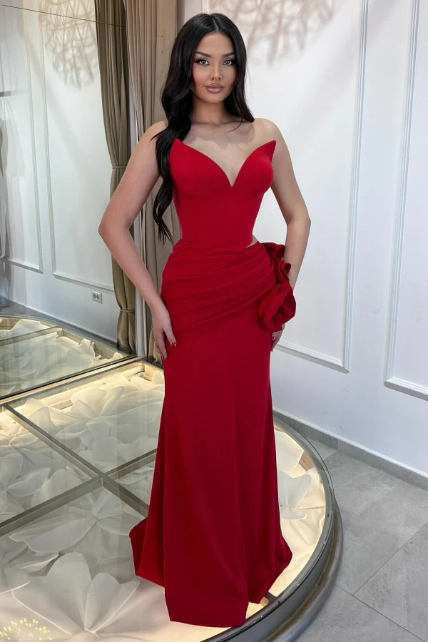 Sexy Sheath V Neck Sleeveless Pleated Flower Prom Party Dress Evening Formal Gown Cocktail Dress