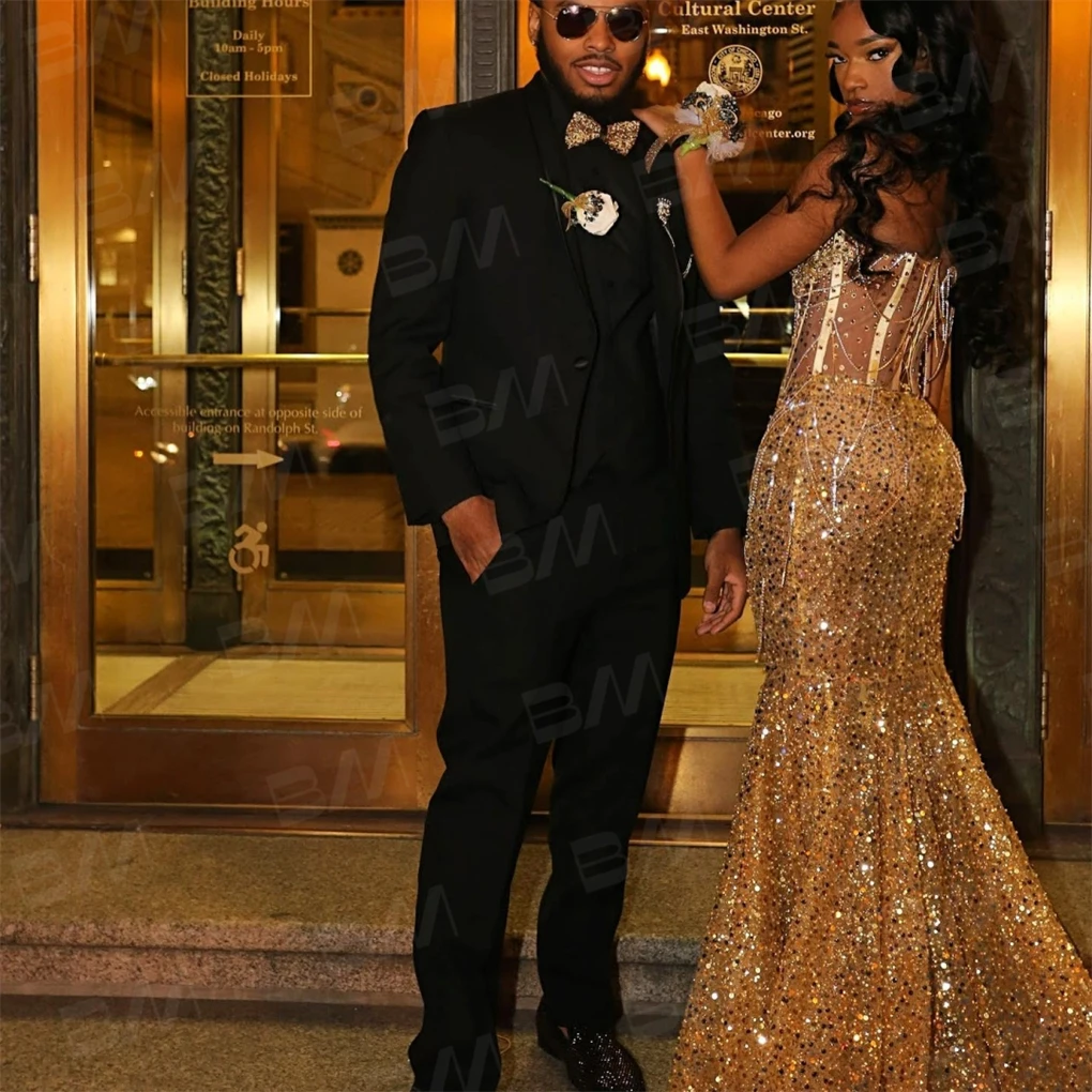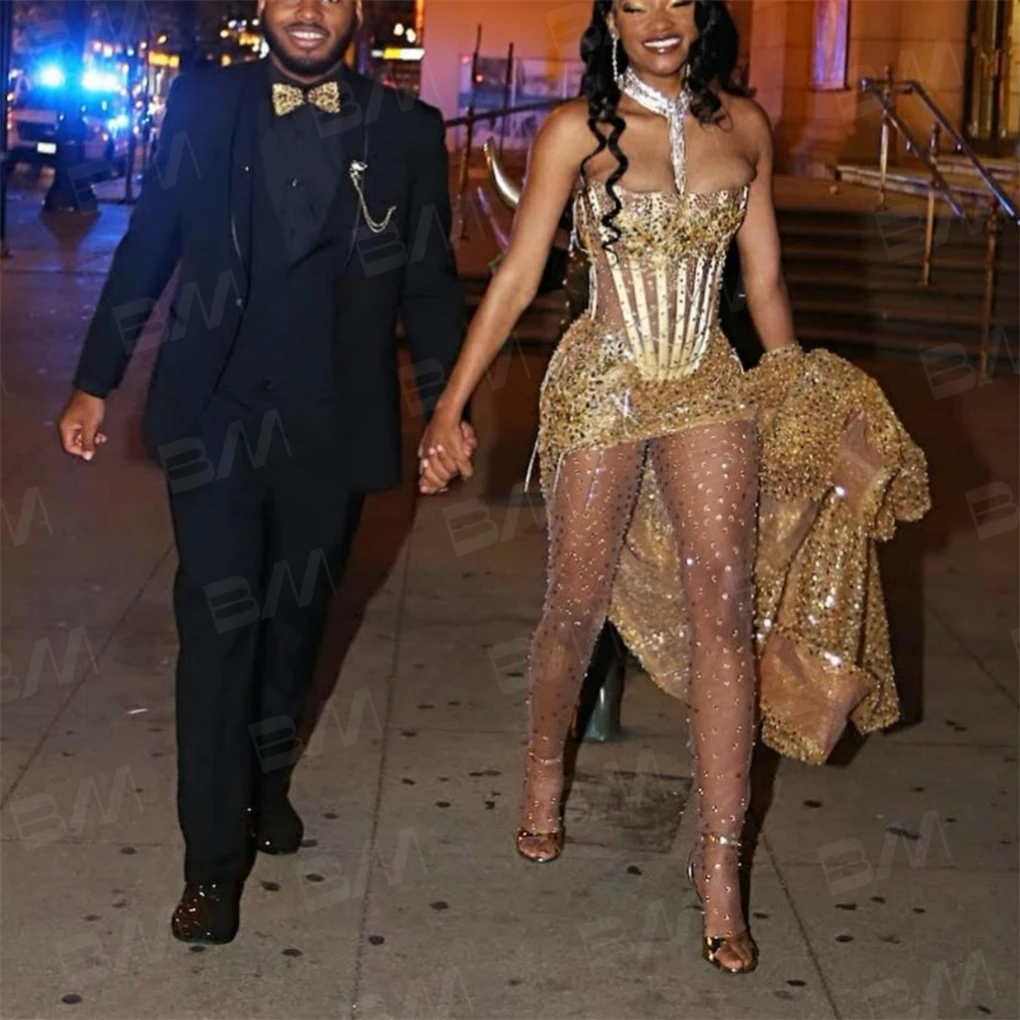 Sparkle Sequined Sexy Prom Dress Mermaid Strapless Cocktail Party Dresses Gold Beaded Formal Occasion Dresses Evening Dresses