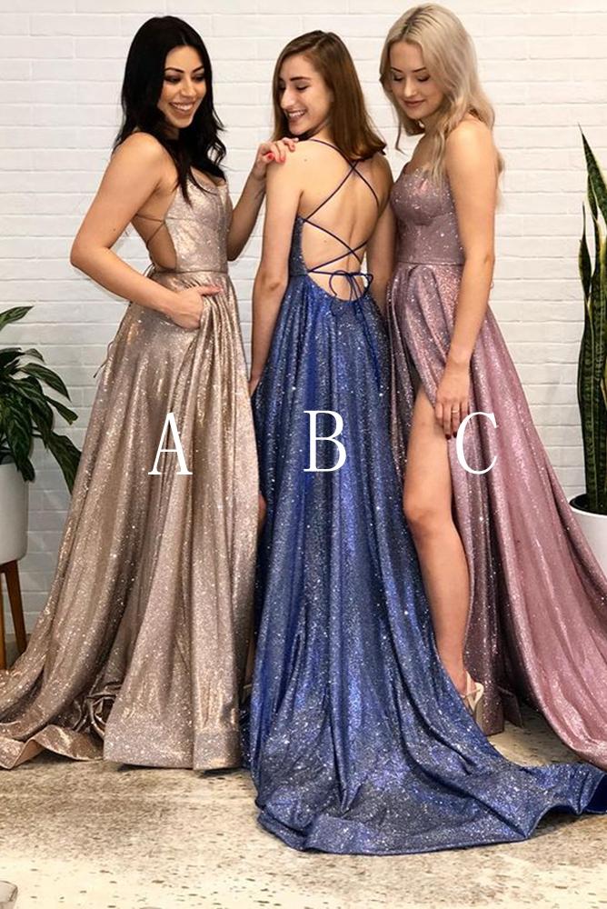 Sparkly Long Prom Dresses with Slit,Formal Dress,Wedding Party Dresses