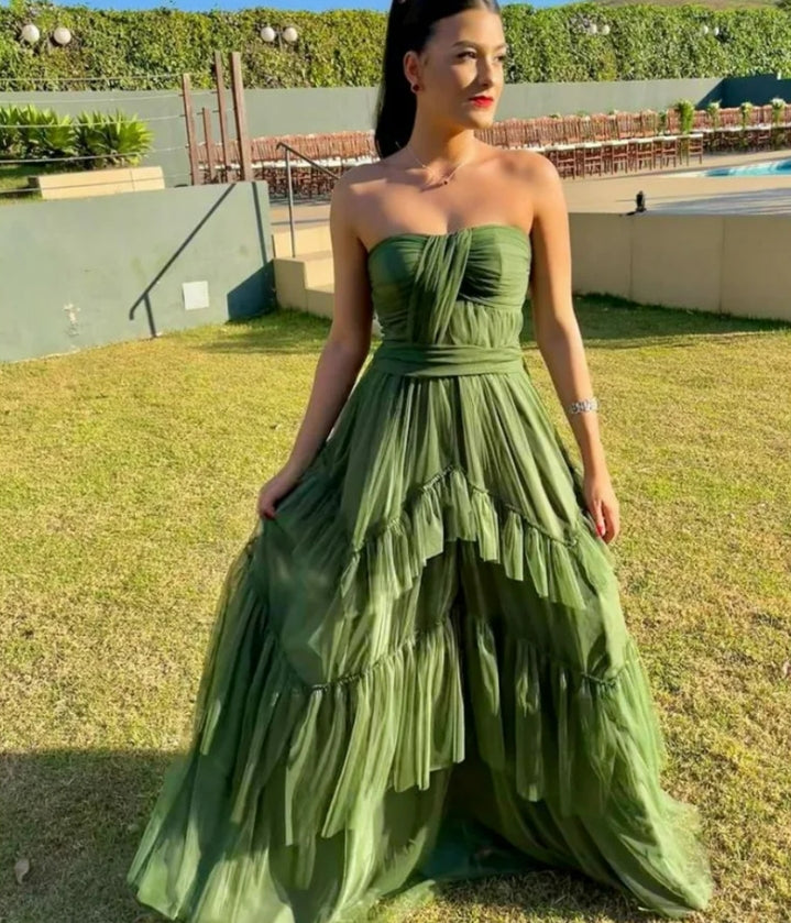 Tulle Strapless Sleeveless robes de soirée Tiered Ruffle Evening Dresses Simple Cocktail Party Wedding Dress