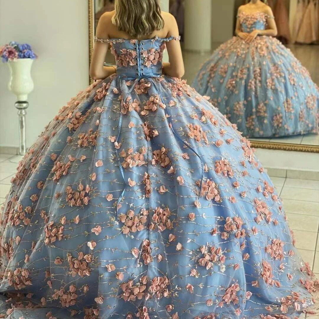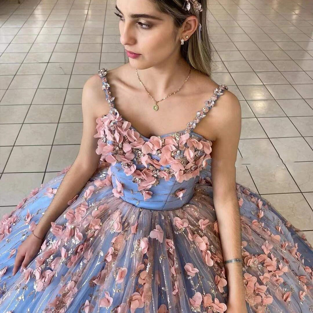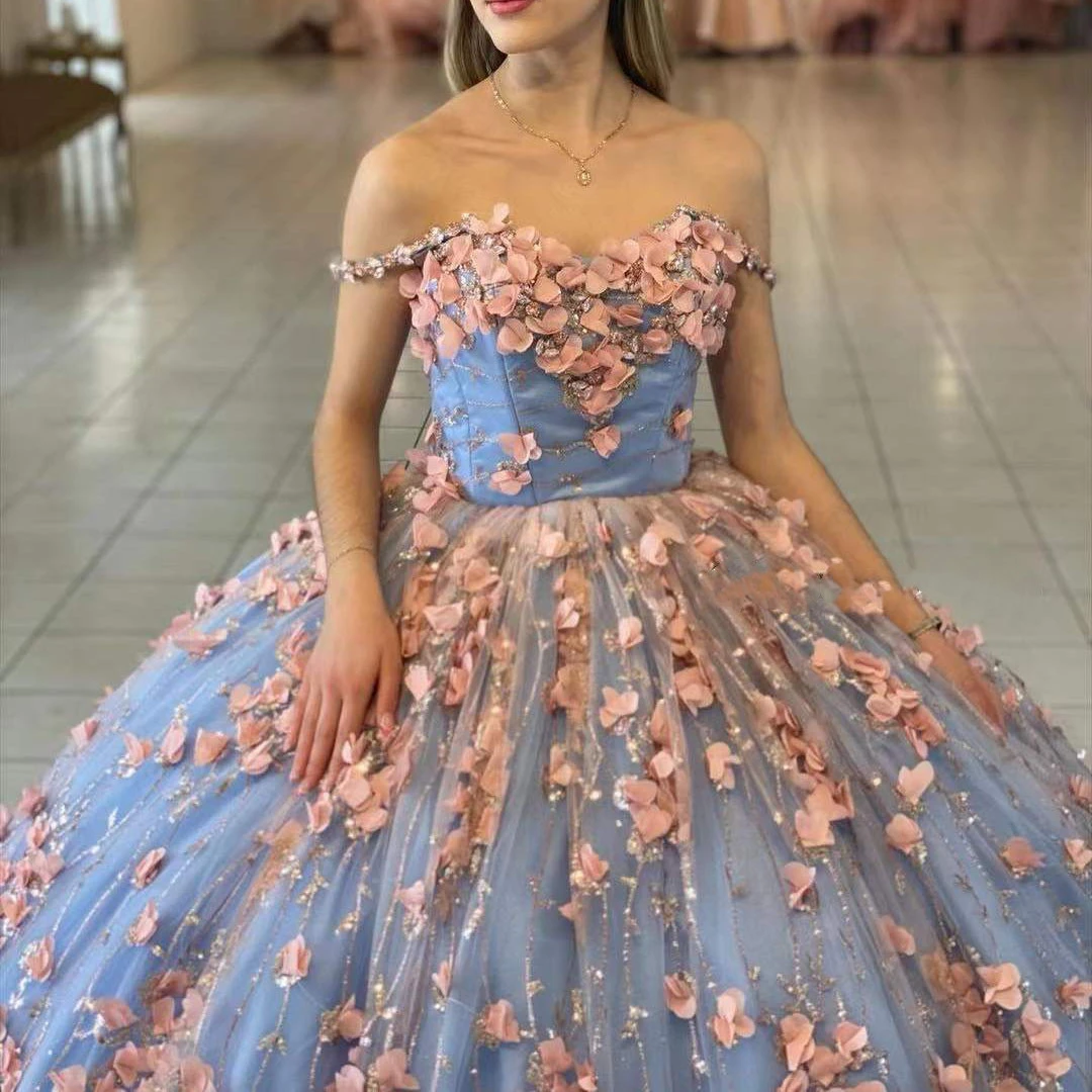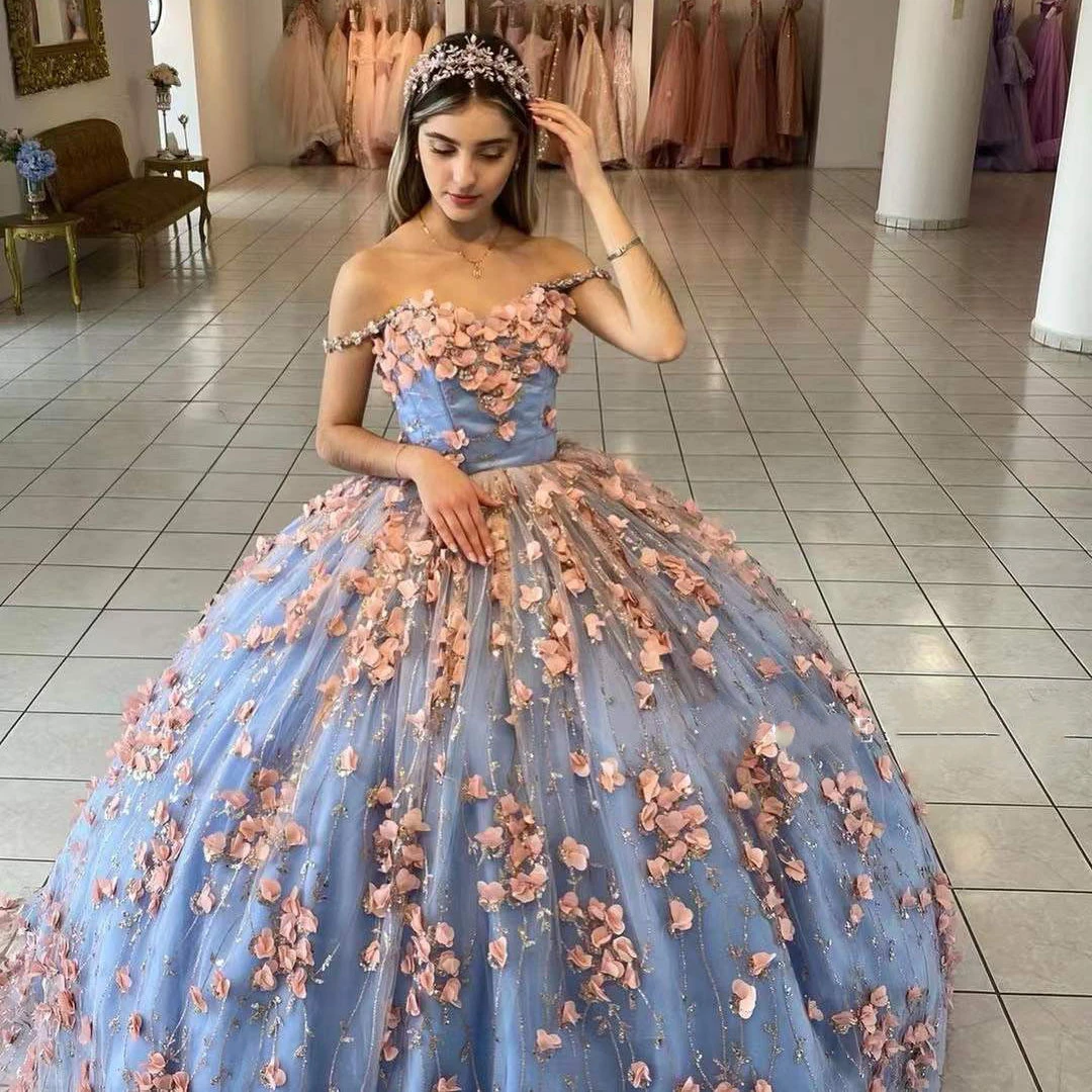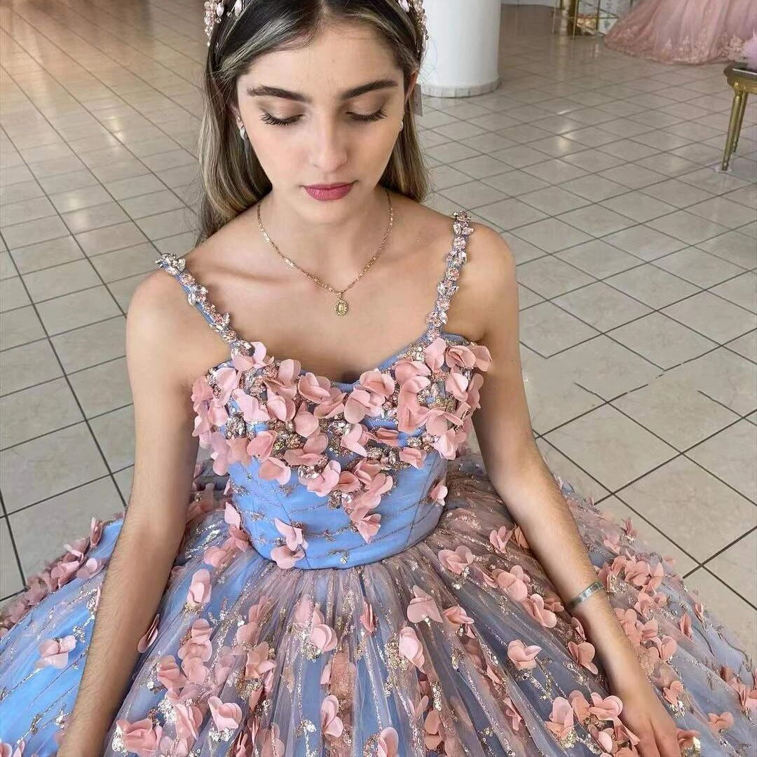 Vestidos De Fiesta New Quinceanera Dresses For Sweet Girl Beading Sequin Handmade Sweetheart 3D Flowers Formal Ball Gowns