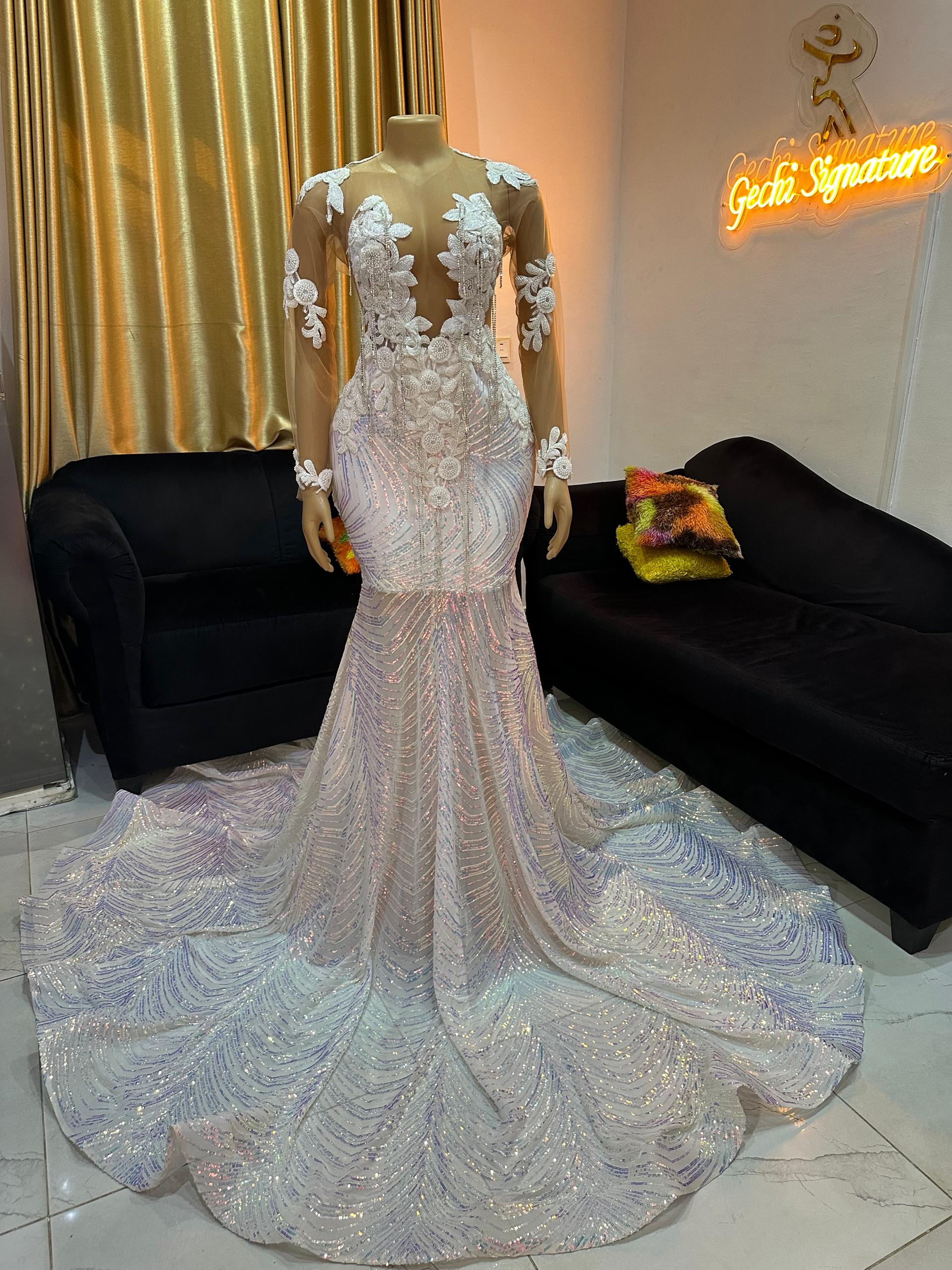 White Mermaid Prom Dresses Long Formal Gown prom wedding dress