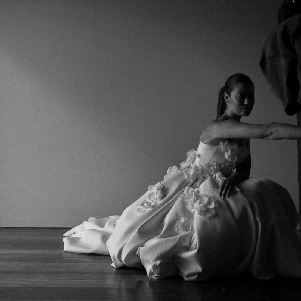 White Satin 3D Flowers Strapless Trailing Prom Dresses Floor-Length vestidos de noche Backless Evening Dress Custom Made